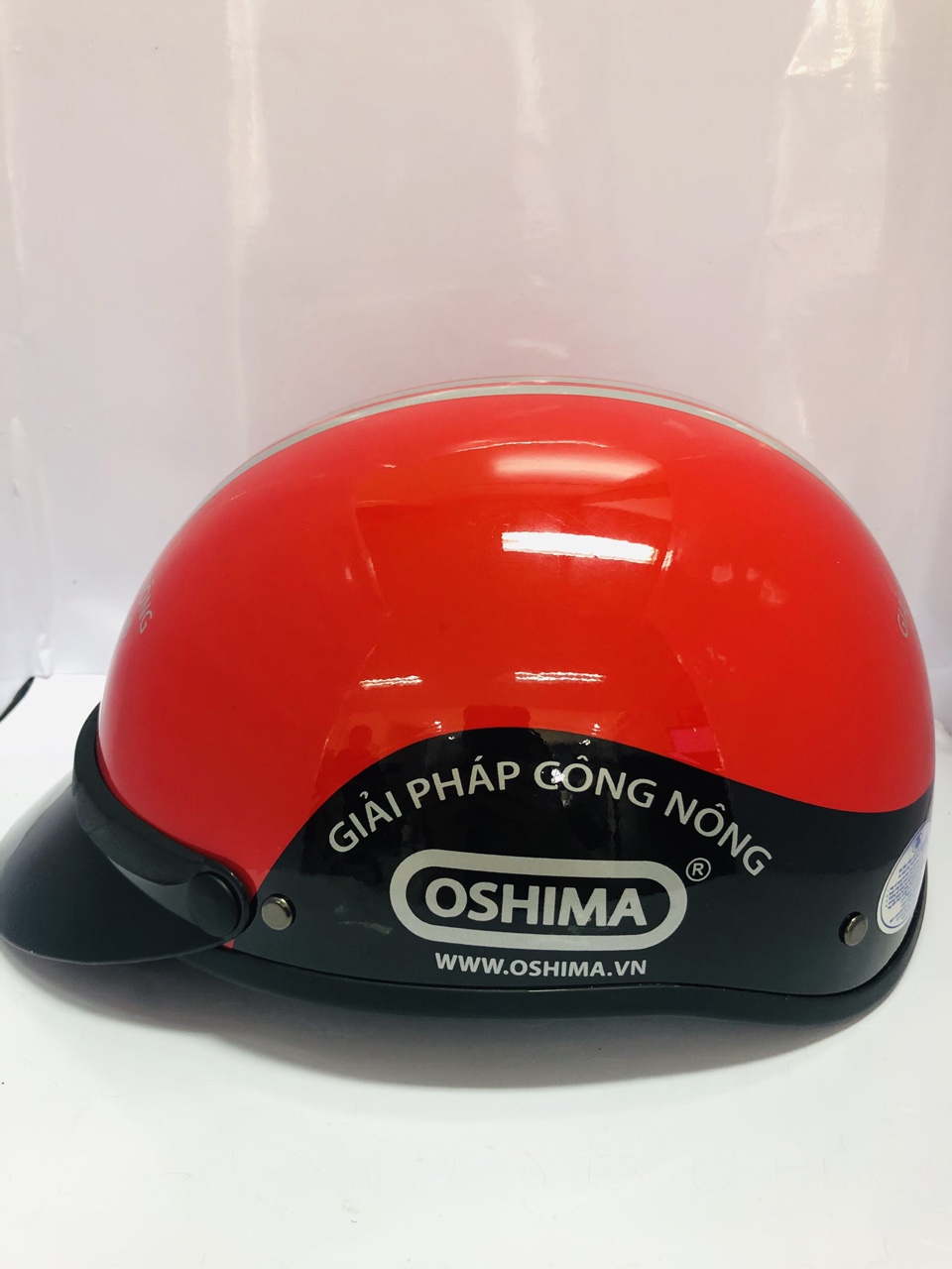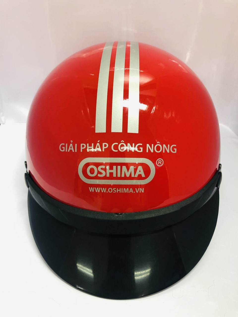 Một trong những sản phẩm tiêu biểu là mẫu nón bảo hiểm quà tặng OSHIMA, thiết kế phối màu đỏ – đen sang trọng, logo in sắc nét màu trắng nổi bật trên nền đỏ. Nón có kiểu dáng nửa đầu nhỏ gọn, dây khóa chắc chắn và lớp sơn chống trầy cao cấp.